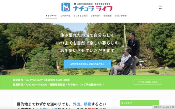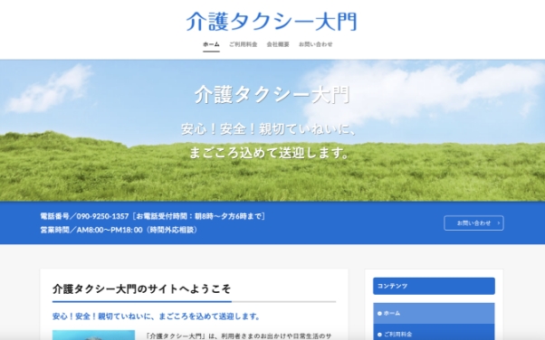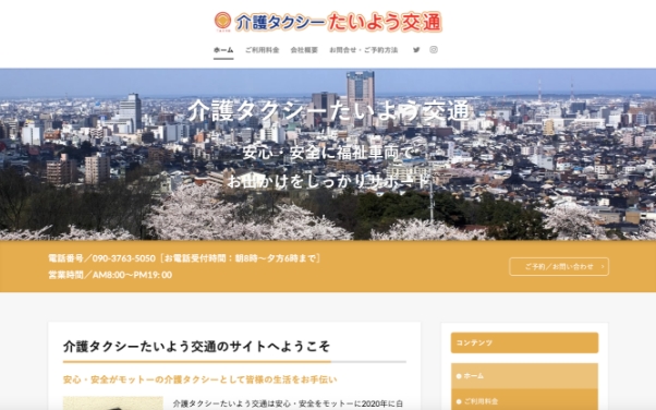 テンプレートを使っても、見た目はしっかり“介護タクシーサイト”に仕上がります。